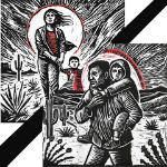 Within all of those people and movements, I really dig the bold lines and stark contrasts…figures framed by circles, radiating lines, and even halos…spotty atmospheric inking and slightly off registration that give this incredible sense of urgency…lone figures surging with power in the face of impossible odds that teeter between inspiring and absurd. It’s all such delicious stuff.